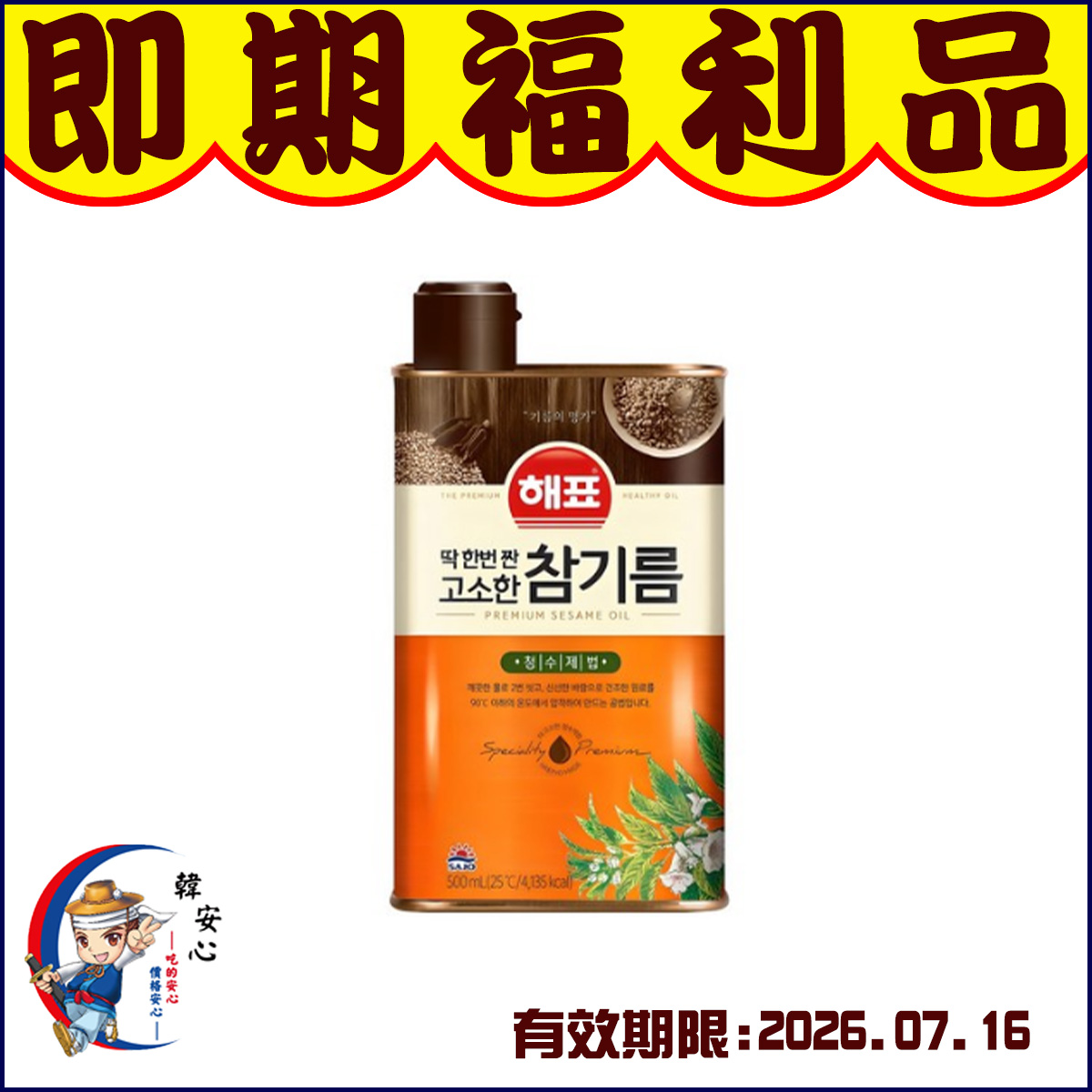 - 【即期】20260717 SAJO太陽牌香油(白芝麻油) 사조 해표 고소한참기름 500ml