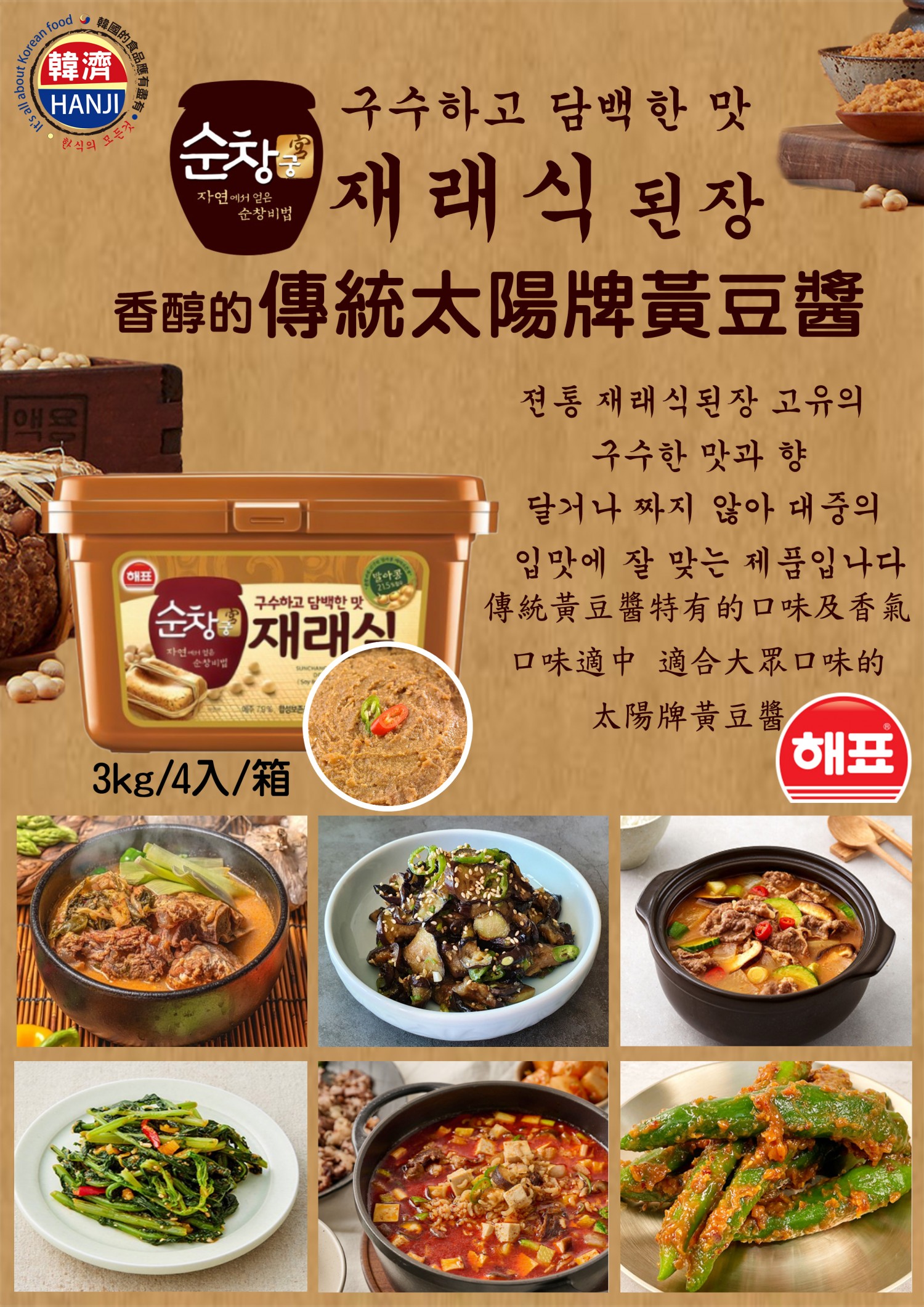 太陽牌味噌醬(黃豆醬) 해표 된장3kg