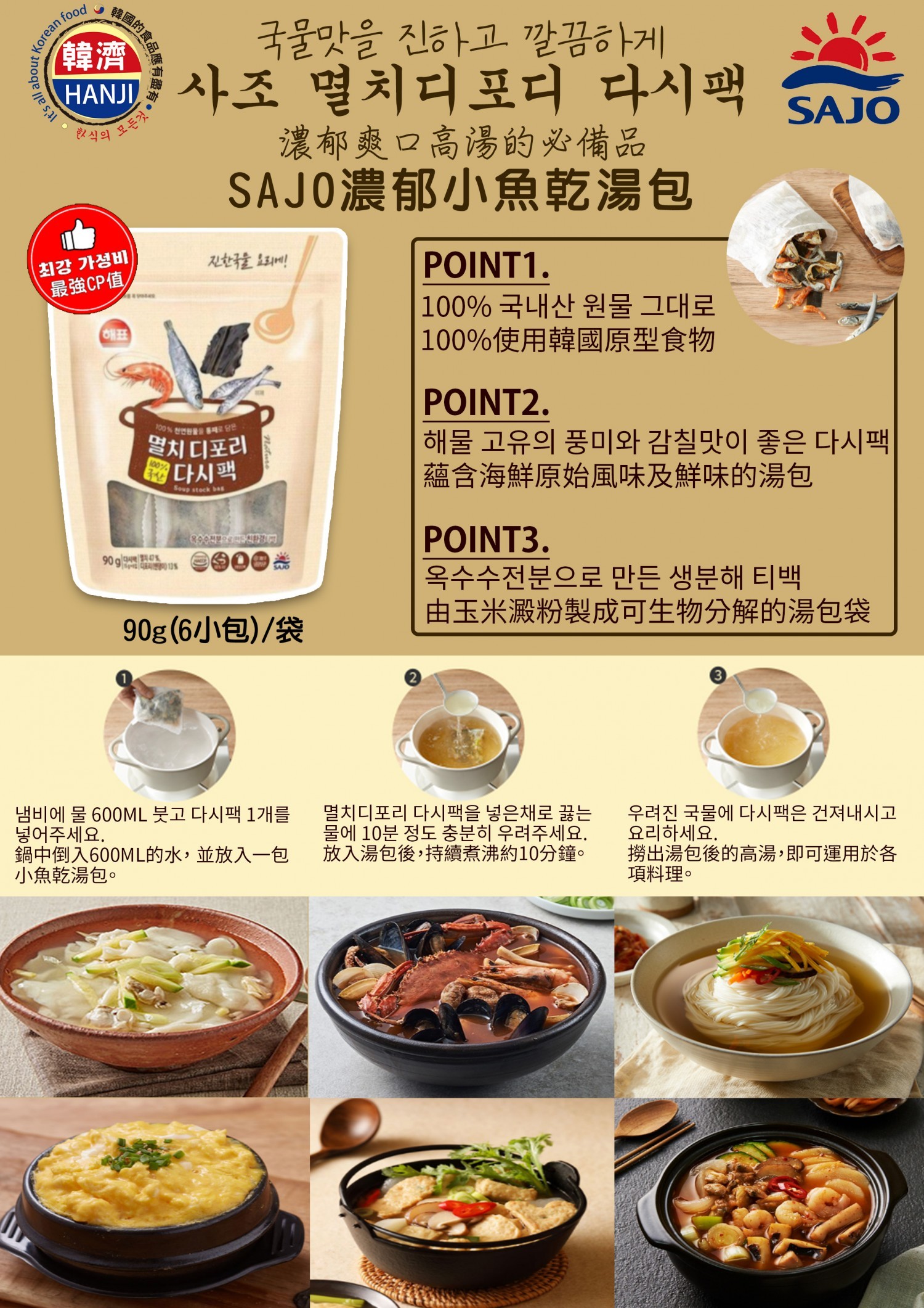 太陽牌濃郁小魚乾湯包 해표 멸치디포리 다시팩 15g*6小包