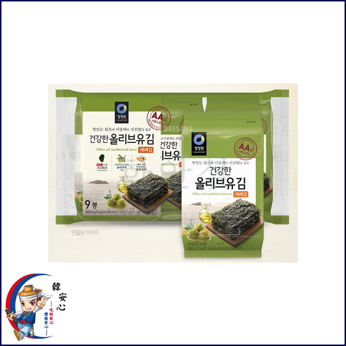 清淨園-韓國岩燒海苔(重口味有加橄欖油)올리브유재래김5g/9包