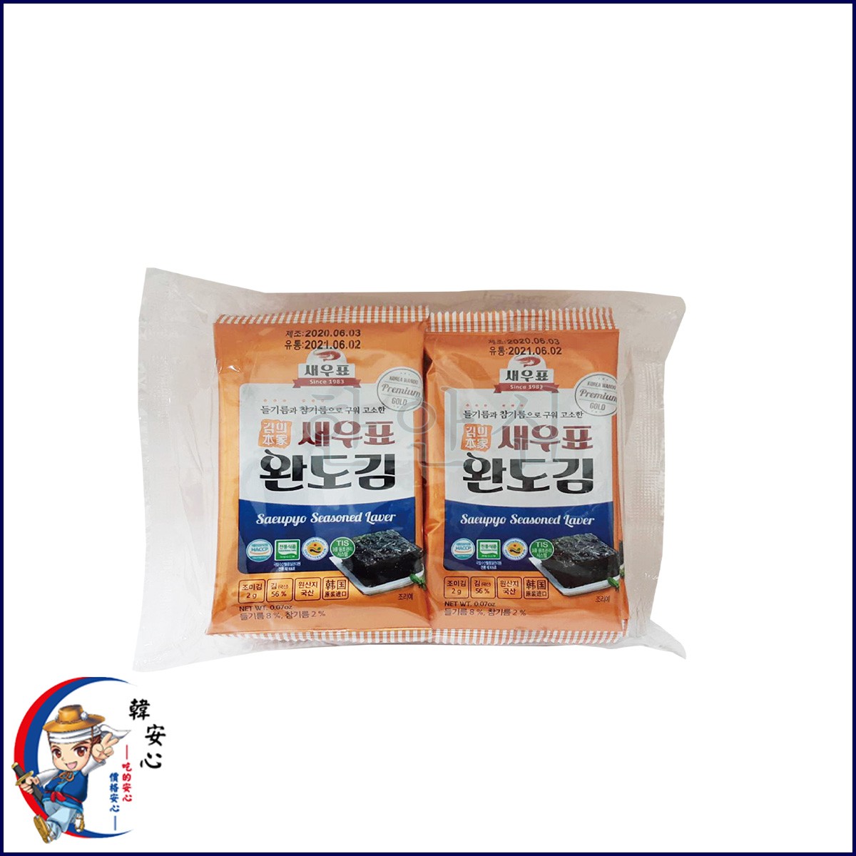 蝦子牌-莞島海苔새우표-완도김2g/10包