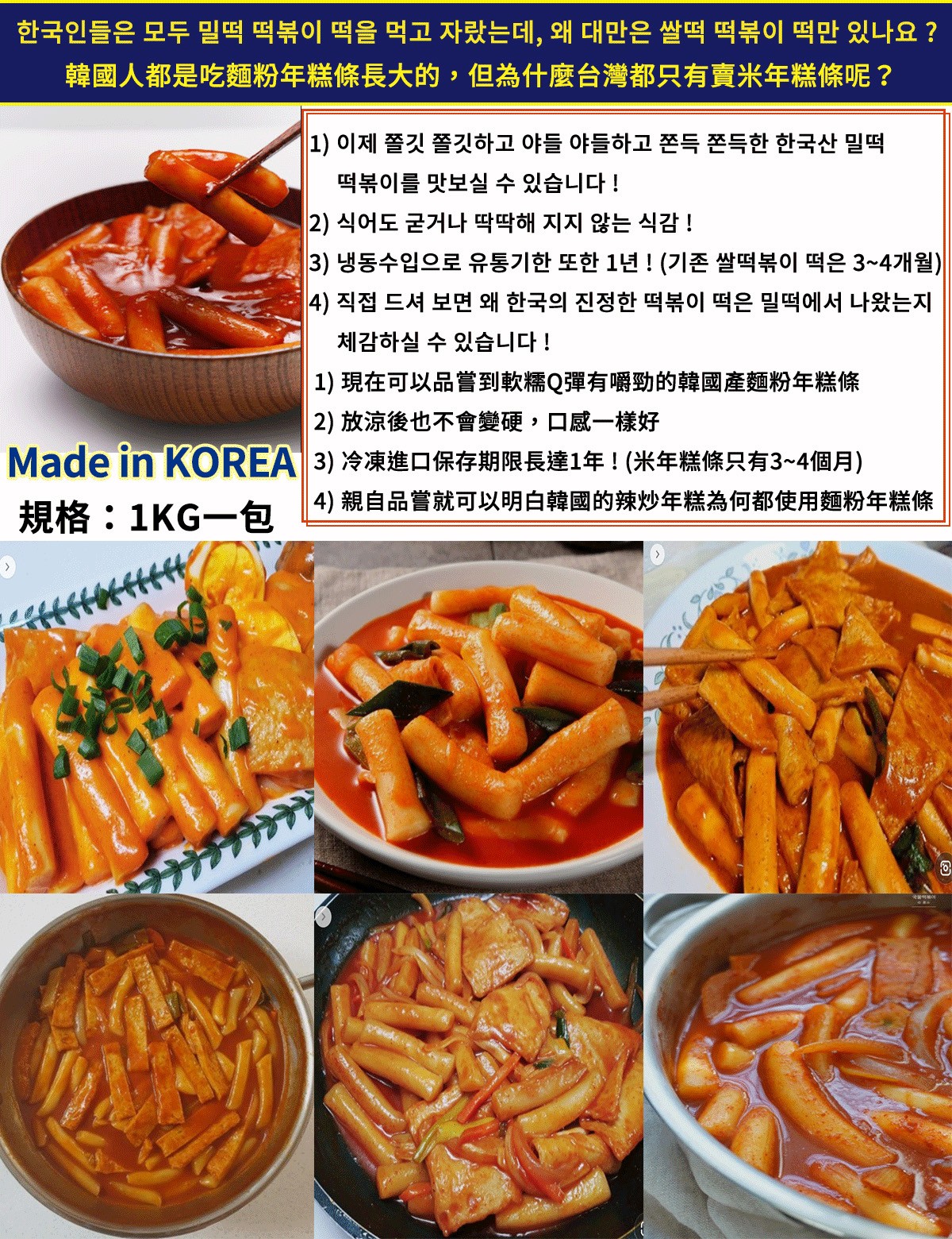韓國麵粉年糕條밀떡1kg(冷凍)