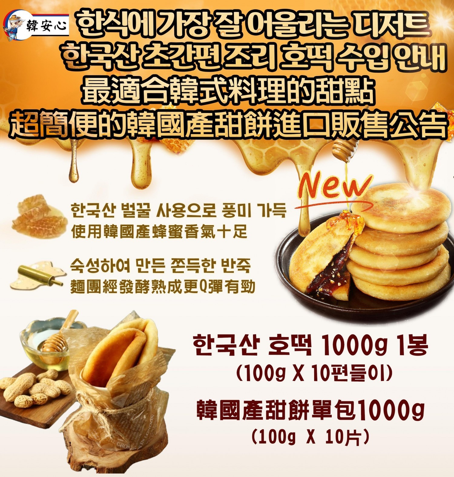 韓國蜂蜜 甜餅한국산 호떡1kg(10片)